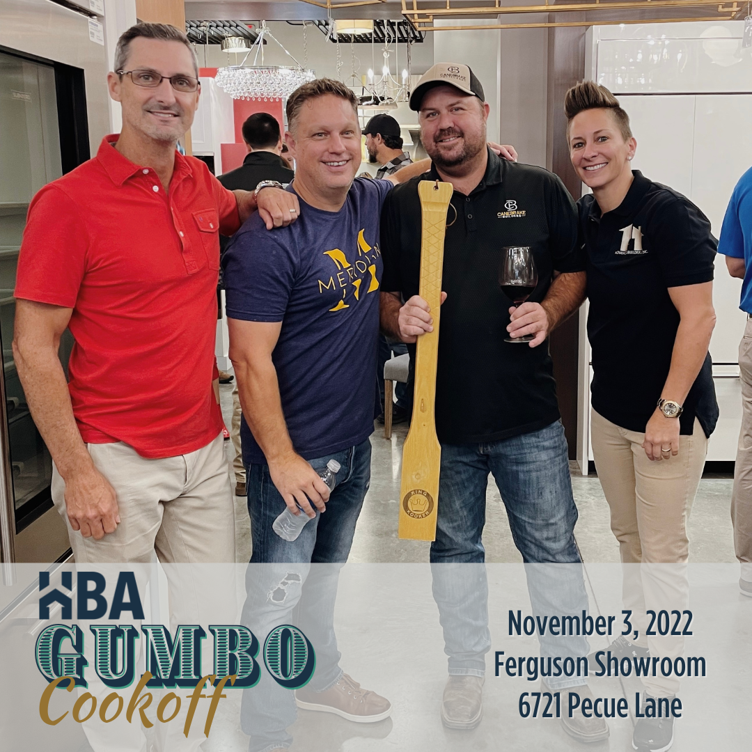 DESCRIPTION:We know our builders build amazing homes\, but how about their cooking? Join us at the Ferguson Showroom for the second annual HBA Gumbo Cookoff on November 3rd - Doors open at 1:45PM.You won't want to miss this kickoff celebration to start the holiday season and LSU vs. BAMA weekend! It will be a PARTAY with great food\, boozy drinks\, and friends! Space is limited to be sure to register TODAY!This year's featured Gumbo Chefs:Acadian House Design + RenovationColony HomesManchac HomesManuel BuildersMeridian HomesSchedule of Events:1:45PM - Cookoff opens to Public 2:00PM - People's Choice Voting Begins2:15 PM - Guest Judges judge Gumbo 3:00PM - People's Choice closes3:15PM - Announcement of winners4:00PM - Cookoff closes